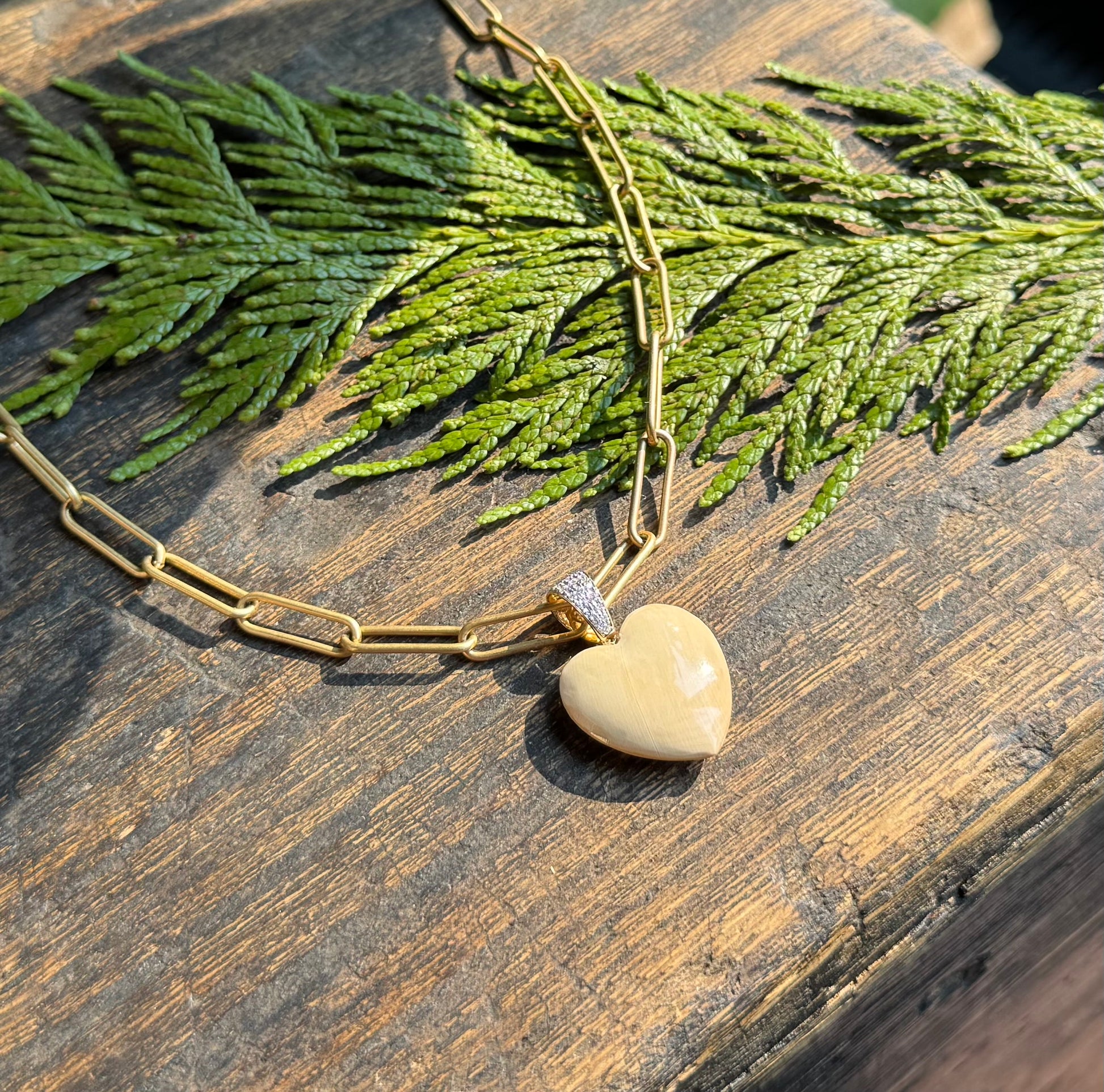 Diamond Pave Mammoth Ivory Heart Pendant