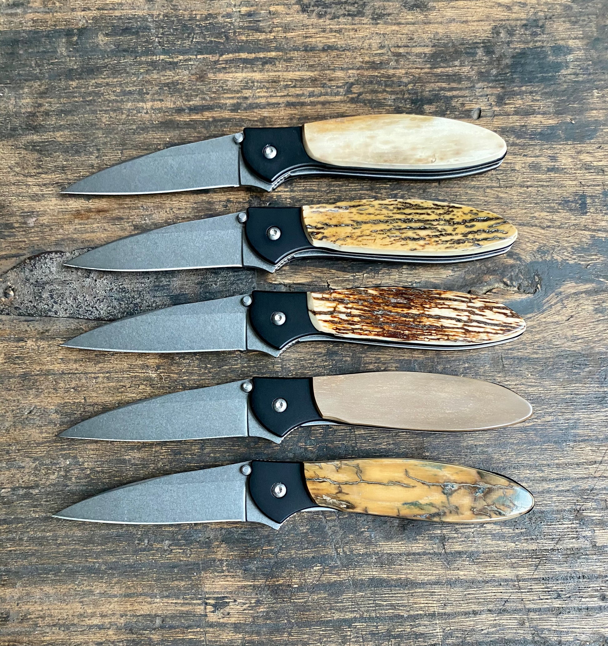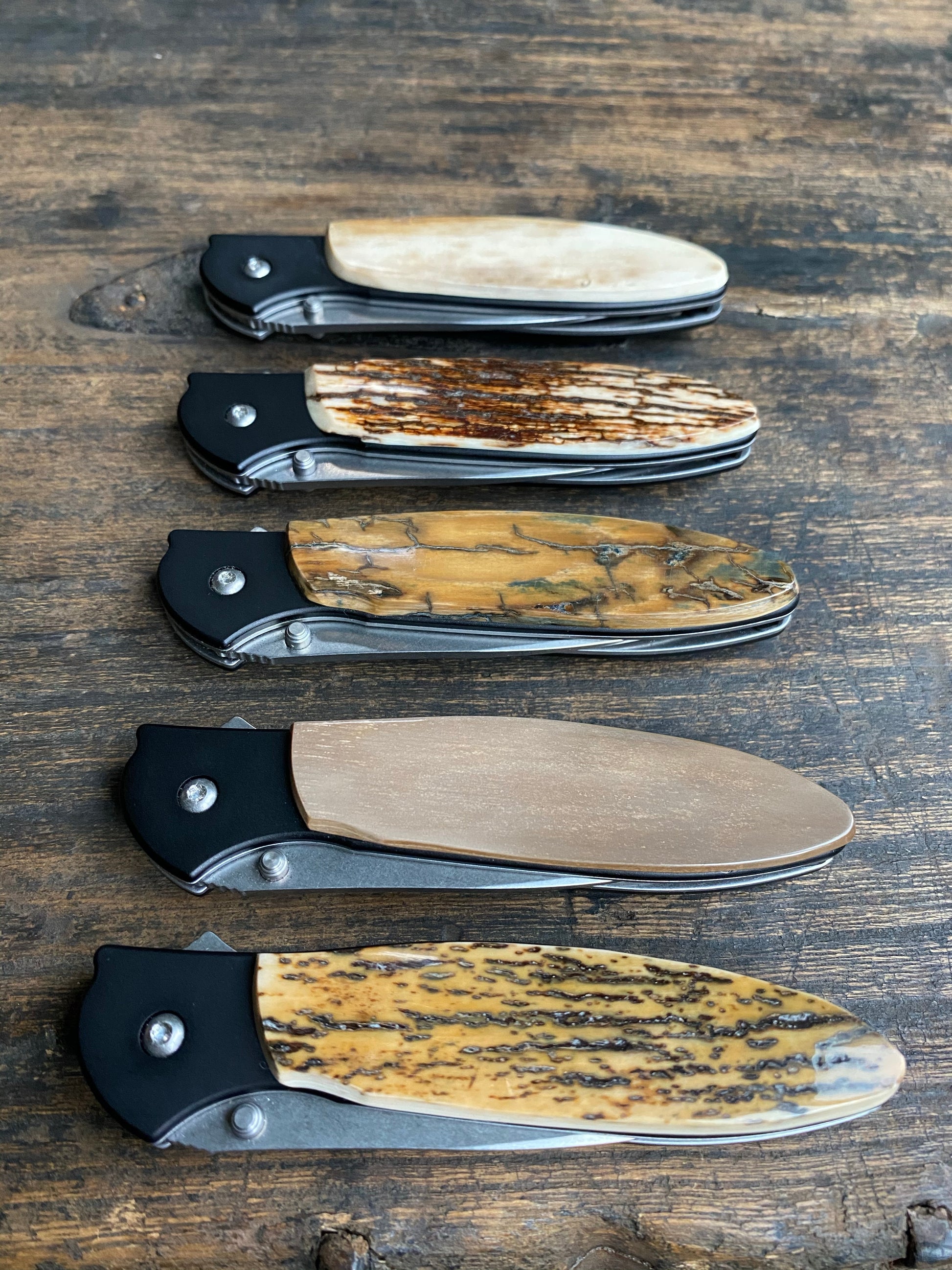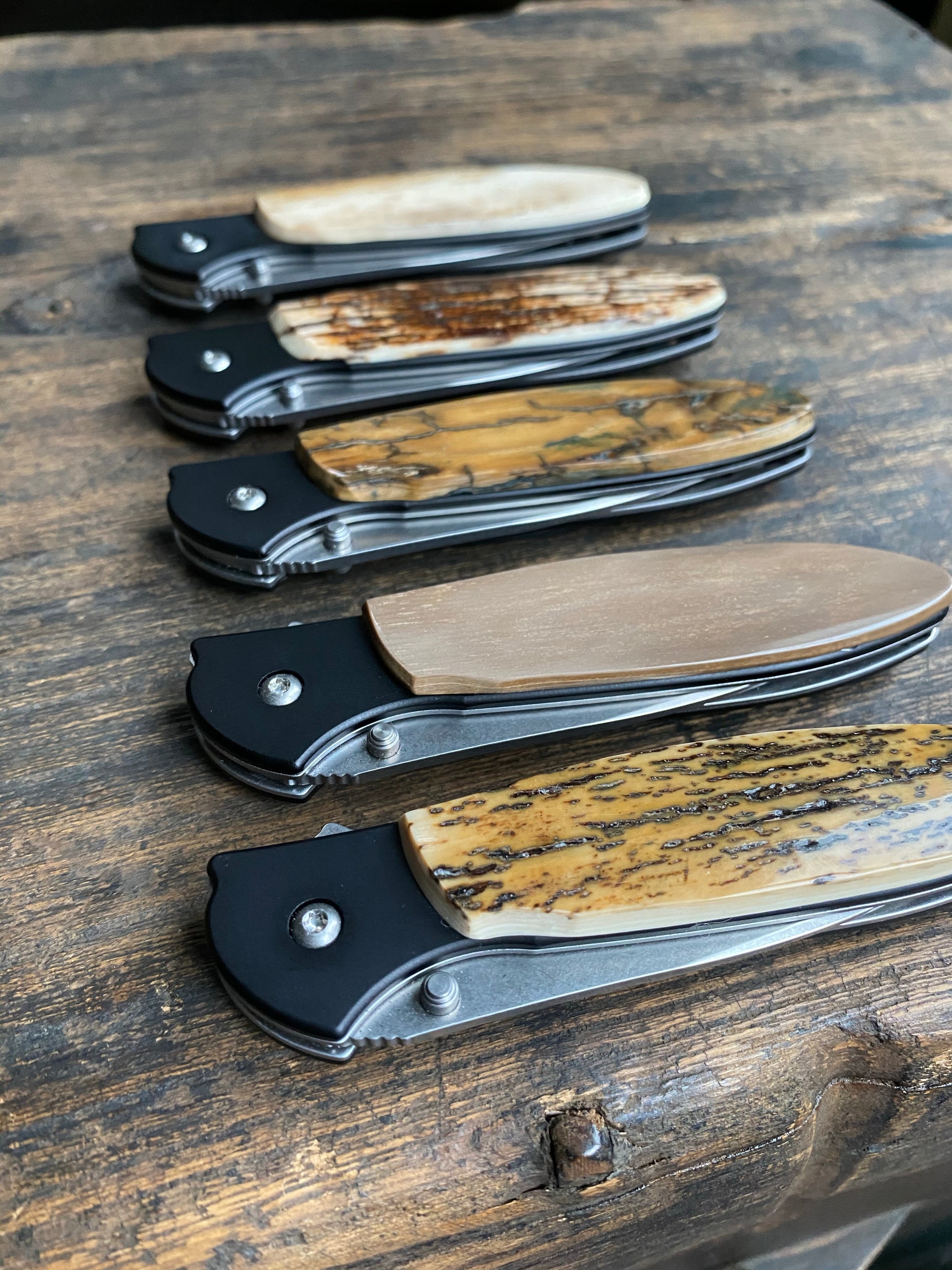 Prehistoric woolly mammoth ivory is found in Alaska, Canada, Russia, and Siberia, and may range in age from 10,000 to 200,000 years. The “bark” or exterior of the fossil mammoth is naturally colorful due to the minerals surrounding the tusk. Center cut fossil tusk may be more cream or tan toned. These minerals seep into the fossil over tens of thousands or hundreds of thousands of years to create a permanent stain on the material. Each pocket knife is a one of a kind due to these unique fossil materials. Available selections may vary from photographs shown.