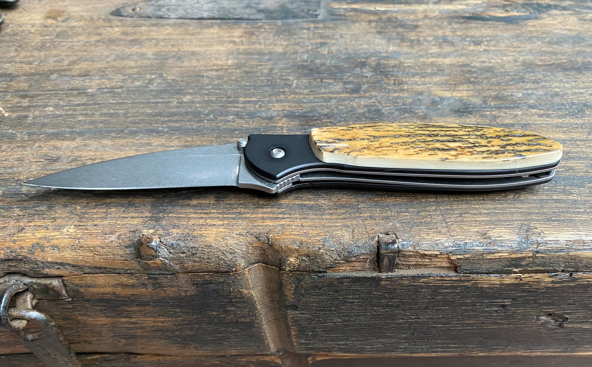 Our Kershaw Leek style pocket knife features a single sided colorful mammoth tusk handle on anodized-aluminum. The anodized aluminum is a fade-resistant and scratch-resistant. The Leek also features a task-ready 3-inch blade of Sandvik 14C28N stainless steel, a high-performance steel designed in a partnership between Kershaw and Sandvik. This quality steel enables us to ensure the Leek’s blade is razor sharp out of the box and holds that edge for a long time. Kershaw pocket knives are made in the USA.