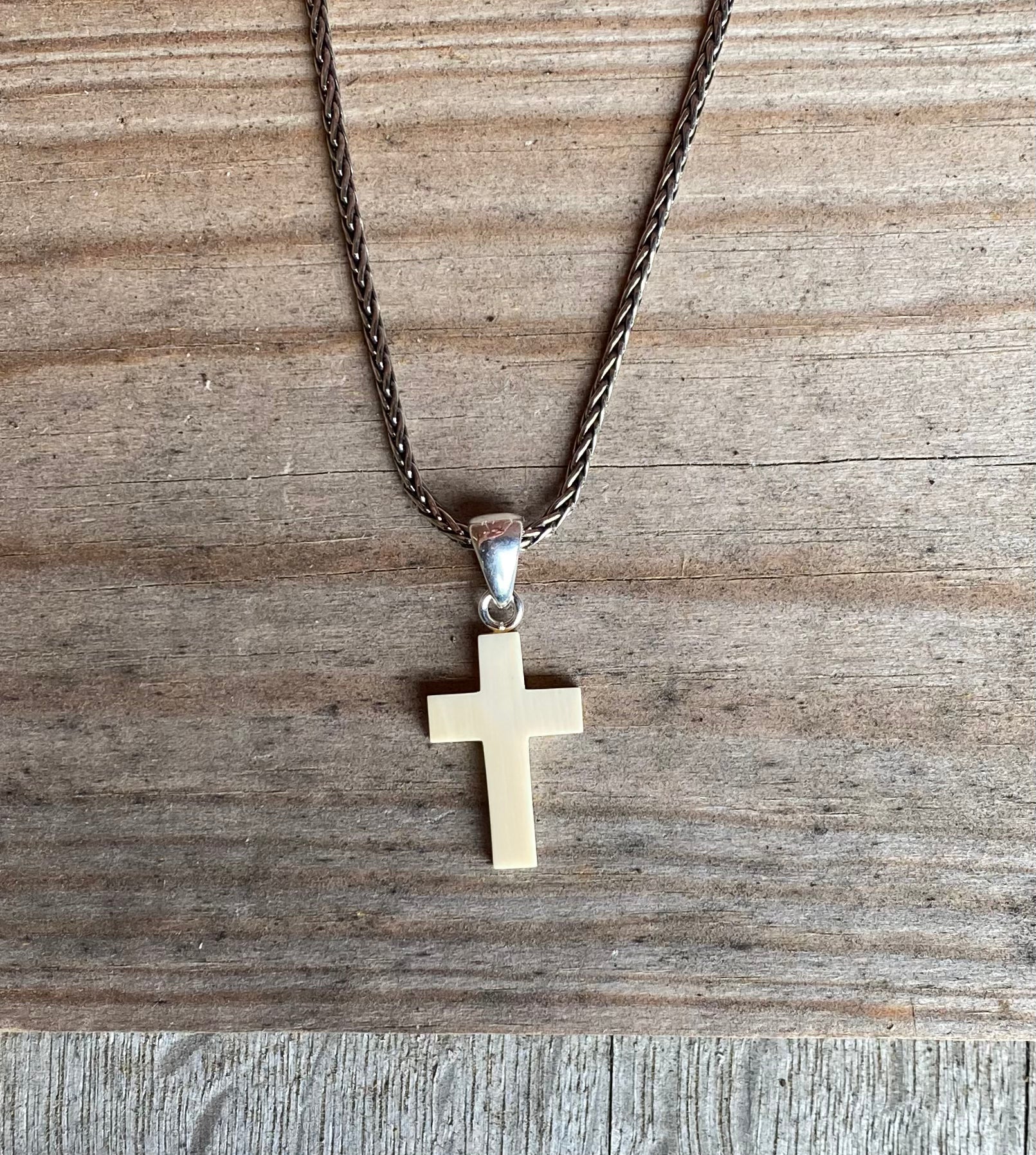 Prehistoric woolly mammoth ivory cross pendant set with rhodium plated sterling silver bail and your choice 18”, 20”, or 24” sterling silver chain.