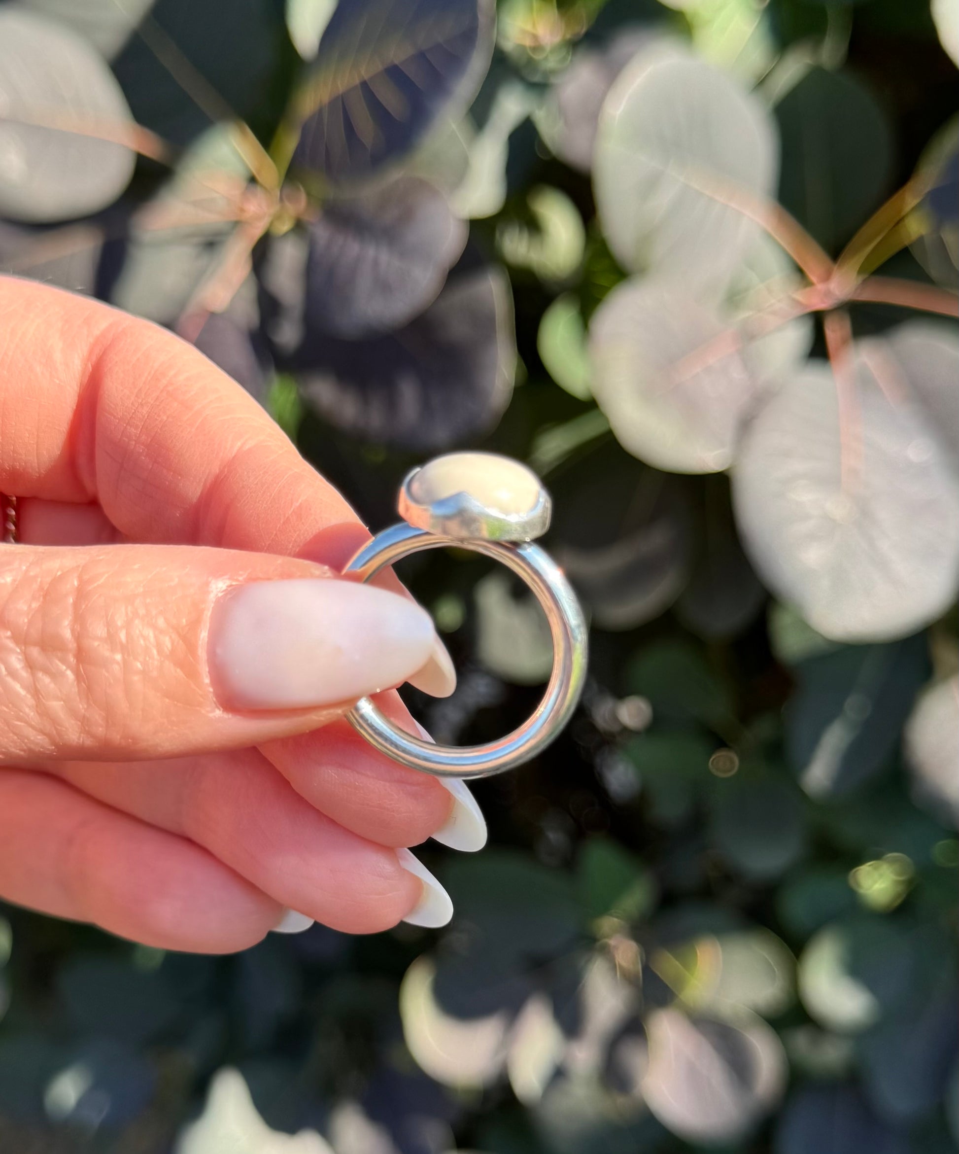 The prehistoric woolly mammoth ivory small Essentials Ring features a round rhodium plated sterling silver shank for comfortable wear, and our signature essentials setting.