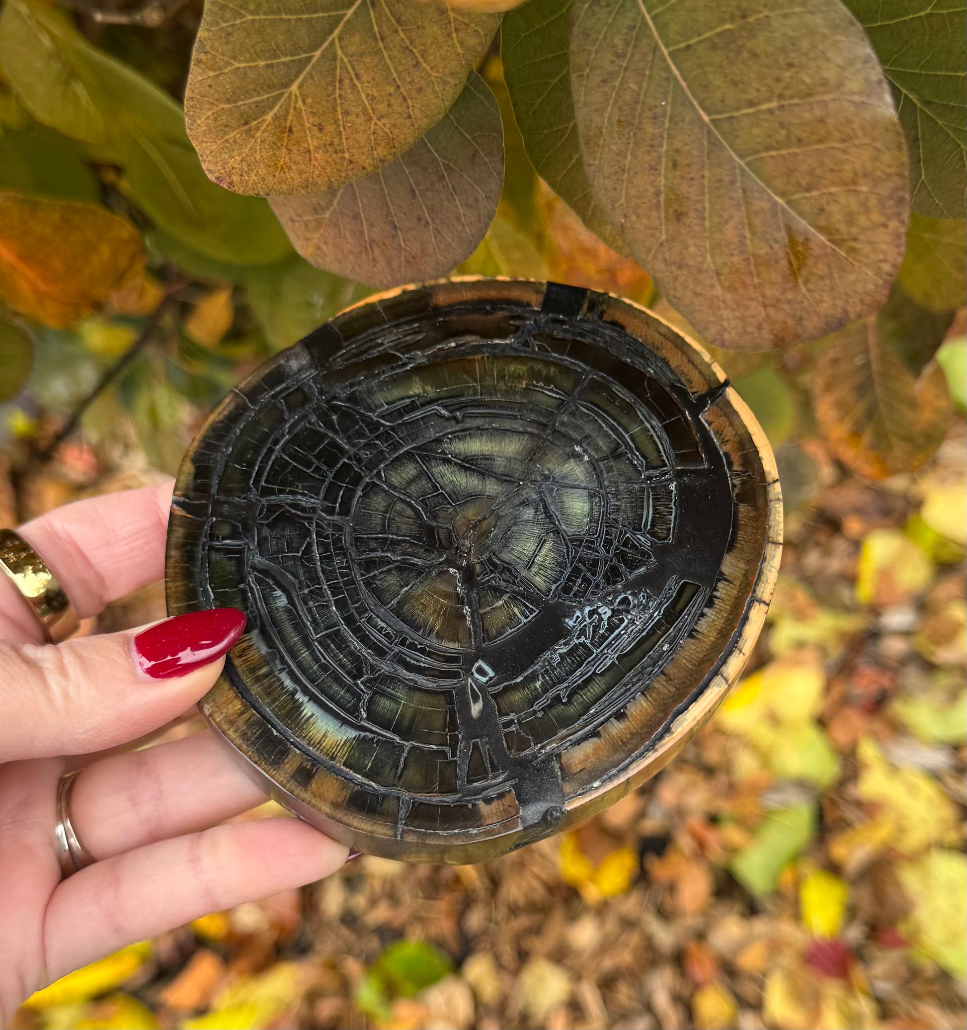 Each prehistoric woolly mammoth tusk slice is a one of a kind and will vary in shape, size, patterning and color from photographed example pieces. Fossil tusks are stabilized, cut and polished in the US. Pieces may be natural or color treated. If you would like to hand pick, please email courtney@ivoryjacks.com for available selection.