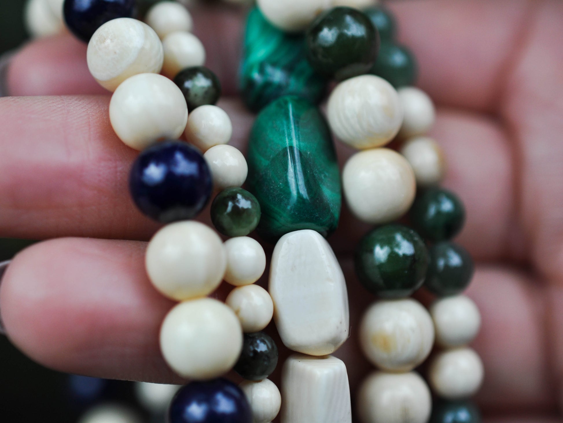SOLD OUT Green Malachite & Mammoth Natural Bead Bracelet (photographed center)